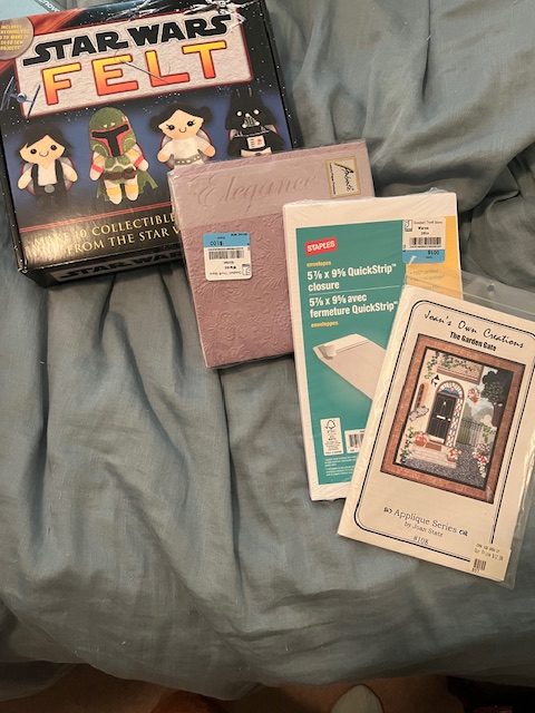 - Vintage (from 1997 – a wee craft store here in Calgary that had been called Joan’s Creations) applique series fabric craft pattern. Was $4.00 but was a green tag (50% off that day) and so I got it for $2.